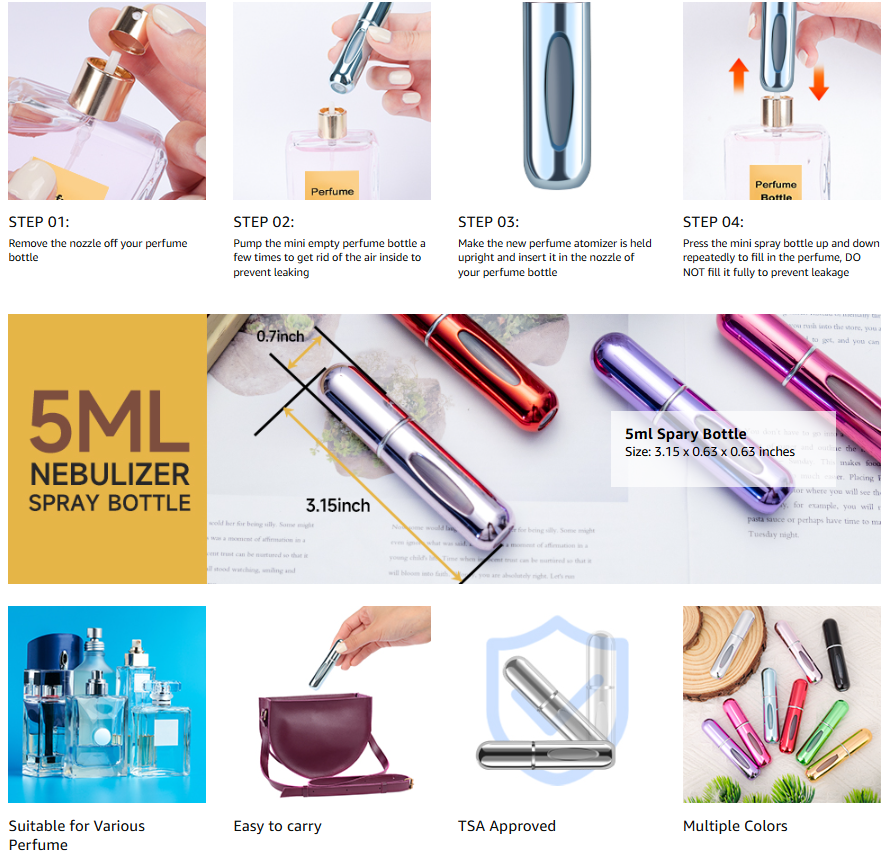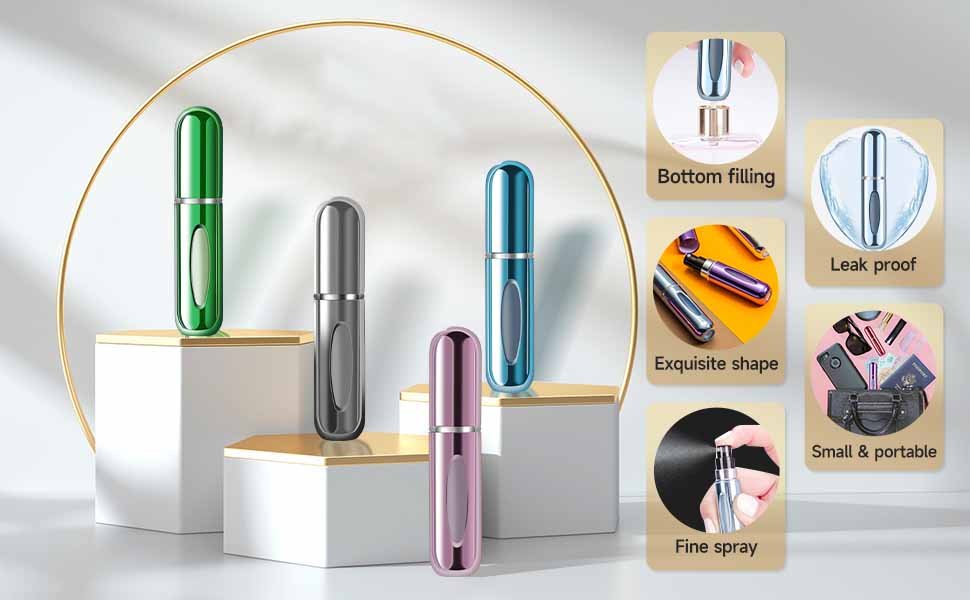 Stylish & Colorful: Comes in Pink, Gold, Black, Silver, and Blue, so you can personalize your fragrance style or carry multiple scents at once.