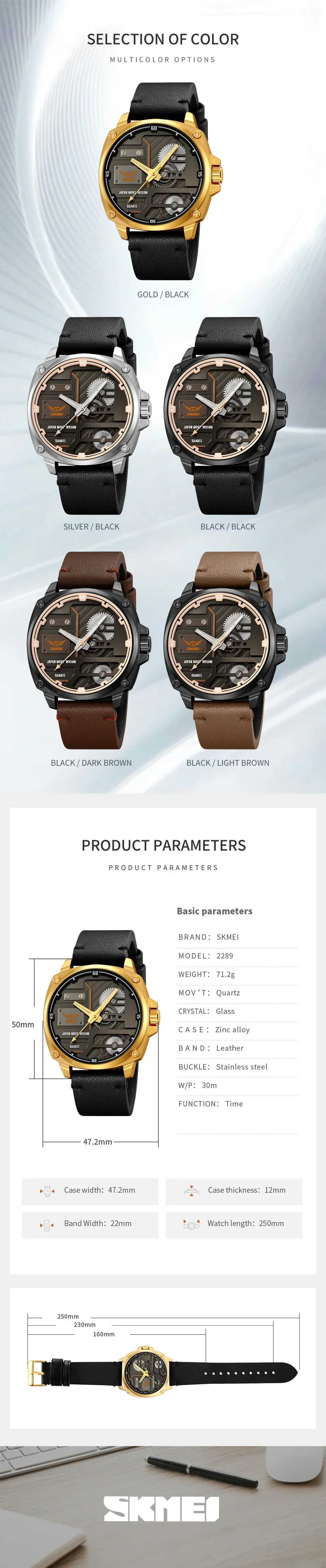 The Skmei 2289 Quartz Watch features a classic and trendy design with a leather strap, making it a perfect match for office, casual, or formal outfits.